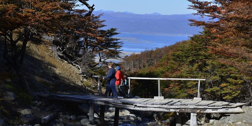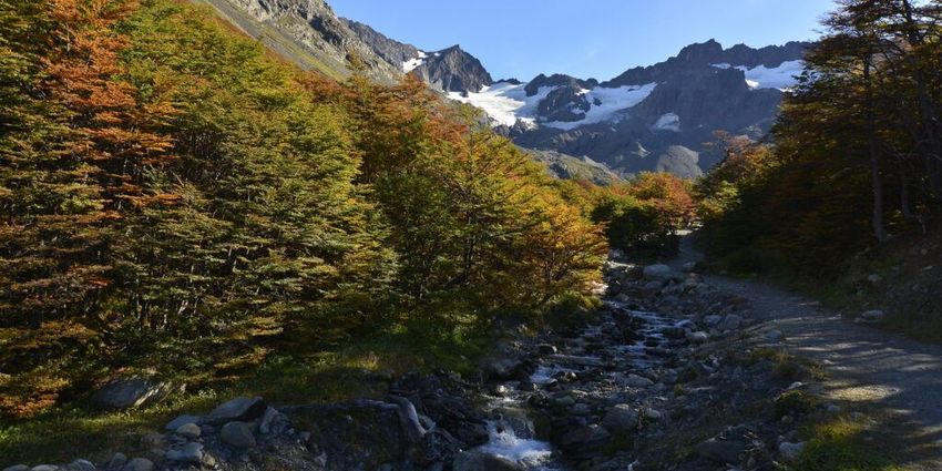 A partir de allí comienza el sendero señalizado que sube hasta el glaciar. El camino ofrece vistas panorámicas increíbles: la ciudad, la bahía de Ushuaia y las islas chilenas Navarino y Hoste. En un momento el sendero se divide en dos: hacia la derecha, una senda que conduce al Cañadón Negro desde donde se llega a ver el valle de Andorra, el glaciar Vinciguerra y el Canal Beagle; el de la izquierda llega a la base del glaciar. Se puede continuar escalando el glaciar o realizar una caminata sobre el mismo, siempre y cuando se acceda con un guía especializado que cuente con el equipo adecuado y la experiencia necesaria.